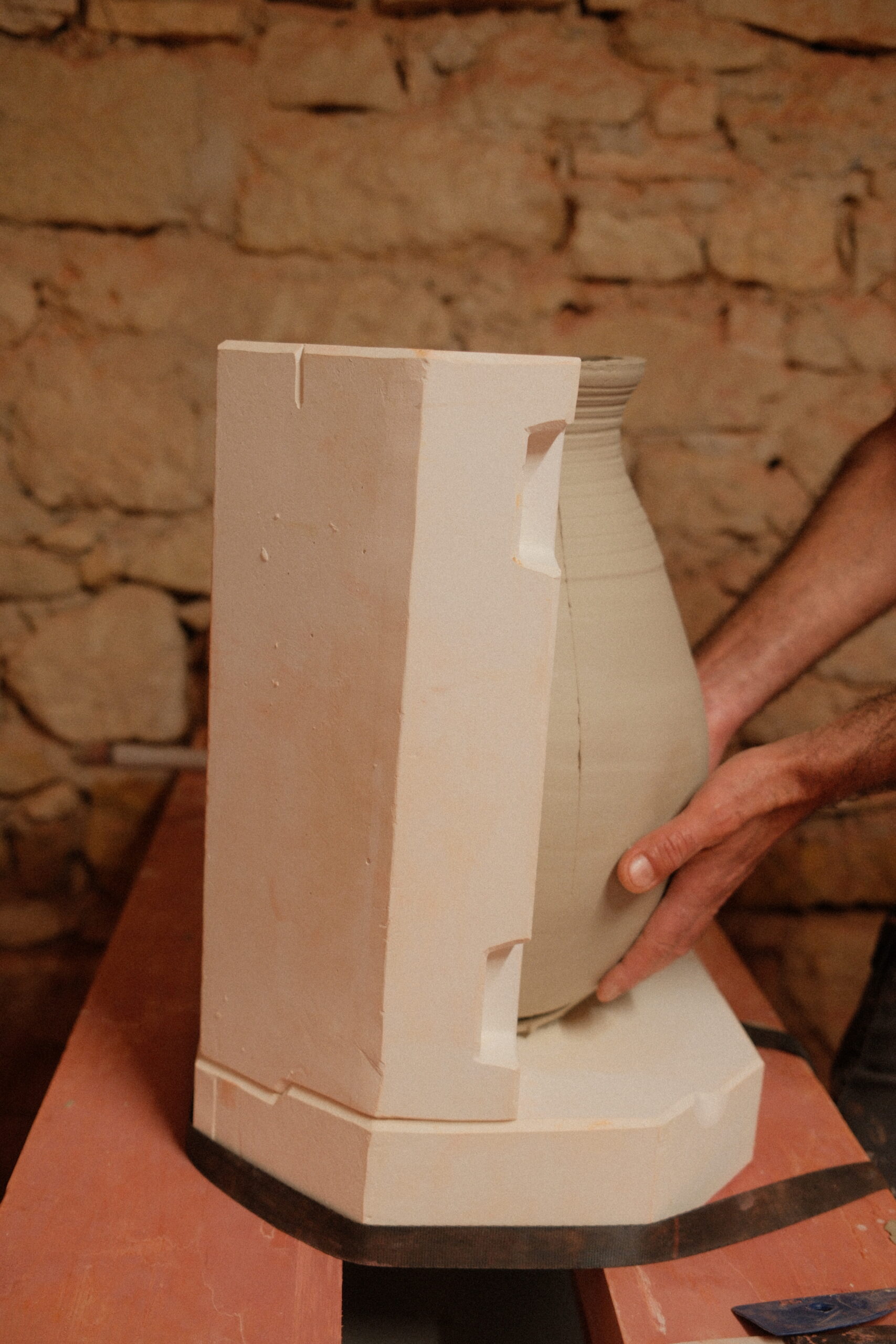 À l’Atelier Guiraud, chaque étape est millimétrée et chronométrée, car la réussite de la pièce dépend autant de la qualité de la terre que du respect strict des temps de séchage.