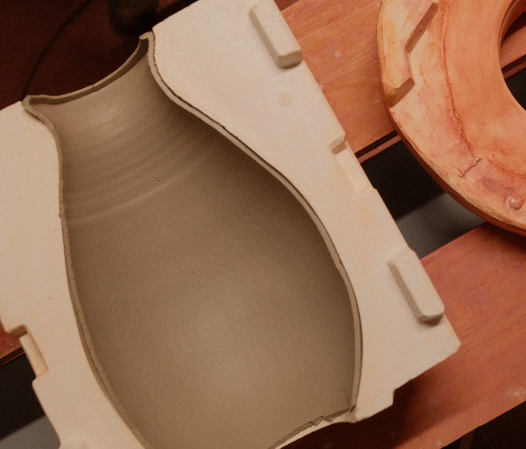 Le coulage est une technique artisanale qui consiste à verser la terre liquide dans des moules afin de créer des formes sculptées, aux lignes précises et raffinées.